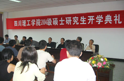 在开学典礼上,院长曾黄麟学院向28名硕士生研究生表示了热烈的祝贺和欢迎。他在发言中指出,虽然这是我院招收的首届硕士生研究生,但是我院过去曾与其他高校联合培养了许多硕士生研究生,积累了一定经验。学院和导师们将会同研究生们一道认真探索,为四川理工学院的首届研究生培养探索出一条新路子。希望同学们珍惜这个机会,积极同导师配合,严格要求自己,刻苦努力,认真学习,为更好的从事科学研究工作打好基础。同时,请同学们放心,学院将尽可能为大家解决生活、学习和科研方面的一切困难。