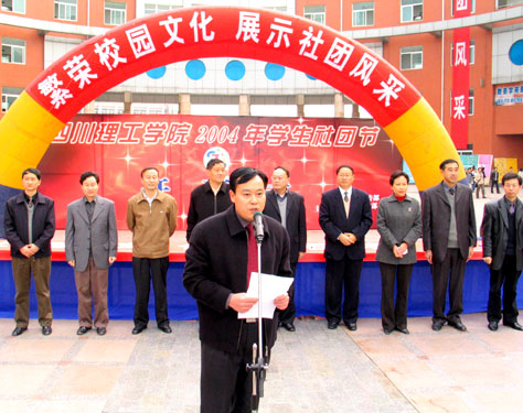最后,社团节组委会顾问游建军书记宣布四川理工学院2004年社团节开幕。