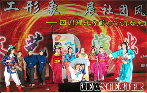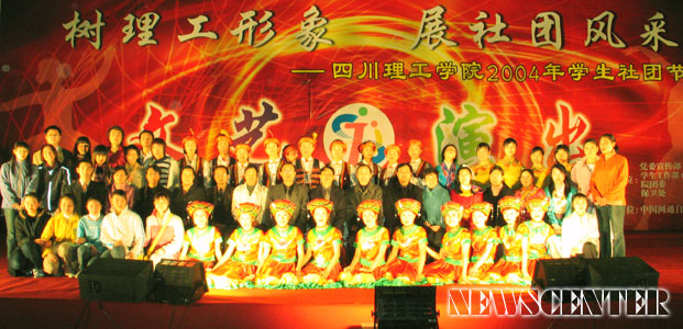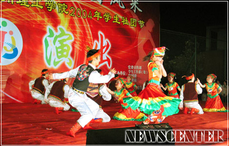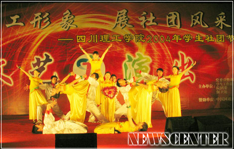 11月23日晚,在汇南校区篮球场,由院党委宣传部、学生工作部(处)、院团委、保卫处主办,中国网通自贡分公司赞助的二00四年学生社团节闭幕晚会隆重上演。
