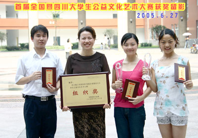在刚刚揭晓的首届全国暨四川大学生公益文化艺术大赛获悉:由我院选送的4名学生经过预赛、决赛双获美声组、民族组冠军,在全省53所参赛院校中脱颖而出;我院团委获得共青团四川省委颁发的“组织奖”。