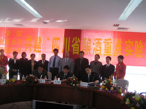 为深入贯彻我院第一届党代会精神,走创优势学科强校之路,10月25日在隆重庆祝“泸州老窖”荣获巴拿马国际金奖90周年暨公司营销指挥中心大楼落成大型活动期间,我院与泸州老窖股份有限公司、四川食品发酵研究设计院就三方共建“四川省酿酒重点实验室”达成共识并签署协议。