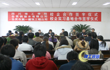建工系与自贡市供排水有限公司和自贡市第一建筑工程公司经过多次协商达成友好合作共识,并于11月23日签定了校企合作、校企实习基地合作的协议,两家公司将为我院学生提供实习场地和实习机会。这将有利于同学们专业水平的进一步提高,将理论和实践进行有机地结合。
