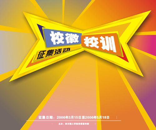 为进一步建设特色校园文化,完善学院CI识别系统,树立学院形象,增强师生的凝聚力和自豪感,根据学院2006年工作要点的相关部署,由党委宣传部牵头,定于2006年3月15日--2006年5月18日面向全院师生员工征集四川理工学院校训和校徽,学院将组织专家和通过网络投票遴选出优秀作品并给予相应奖励。现将具体要求通知如下,请各部门认真组织师生踊跃参加。
