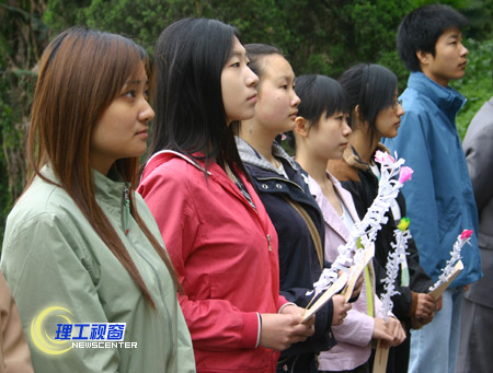 仪式上,同学们面向学院的旗帜、烈士雕像、墓碑,手举《社会主义荣辱观教育大学生读本》,大声宣读了“八个为荣、八个为耻”,并向烈士墓碑敬献了花圈。