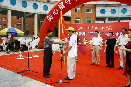 院长曾黄麟发表重要讲话,要求全体成员努力在实践中锻炼自己、积极为当地群众解决问题,从中受教育、长才干、作贡献,他还特别强调要高度重视安全,并宣布“四川理工学院2006年暑期‘三下乡’社会实践”正式出征。
