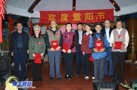 党委副书记唐健禾宣读了2005——2006年度健康老人名单。学院领导为他们颁奖志庆。
