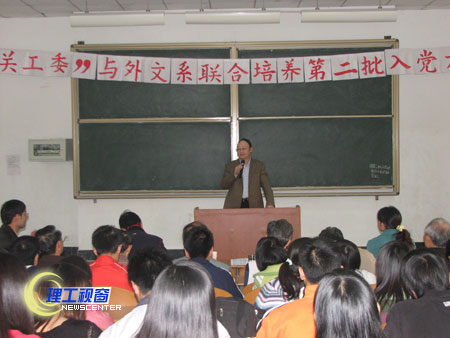 学院关工委与外文系联合培养2006年第二批入党积极分子工作会,于11月15日下午在汇东校区举行。党委副书记、院关工委主任唐健禾,离退休管理处处长、院关工委副主任兼秘书长张卫平,党委组织部副部长杜鑫,外文系党总支副书记吴春容,院关工委、外文系、离退休管理处的老师和老同志等近60人参加了会议。