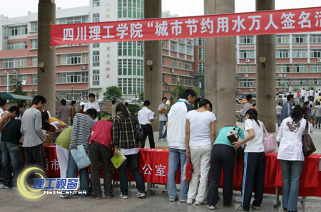 5月16日上午,由自贡市水务局、自贡市城市节约用水办公室组织的“城市节约用水万人签名活动”在我院汇东校区喷泉广场举行。