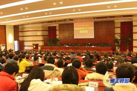 12月19日下午,学院在汇东校区学术报告厅举行学习贯彻十七大精神报告会,原自贡市委宣传部副部长吴树伦受邀做了专题报告。党委书记游建军主持会议,学院党政领导、副处级及其以上领导干部、离退休干部及学生代表听取了报告。
