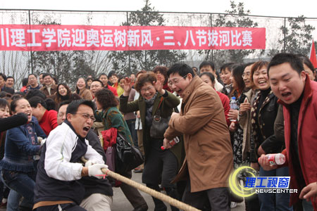 为喜迎三八节,院工会于3月7日下午在汇东校区篮球场组织全院教职工开展了迎奥运、树新风三八节拔河比赛。