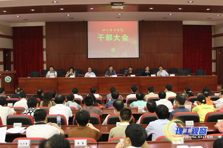 党委书记游建军回顾了学校院系调整和干部轮岗竞聘的基本情况,他指出,这次干部调整,进一步强化了年轻干部的培养,轮岗交流工作取得了新进展,干部的职称学历得到了进一步优化。他要求新任的干部在今后的工作中,思想要再解放一点,工作要再努力一点,要求要再高一点。针对设立二级学院,努力创建大学,他指出,学校更名建立大学不是我们的最终目标,建立大学只是我们发展过程中一段时间的奋斗动力,是我们提升办学水平,促进学校又好又快发展的一种手段。要求全校干部职工要有正确认识,不怕困难,要抓住机遇,乘势而上。他希望各院系部门,要按照曾院长部署的六个方面的工作,结合各自的具体情况,把会议的精神认真宣传贯彻下去,做好学校的各项工作。