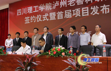 10月9日上午10点,“四川理工学院、泸州老窖科研奖学金签约仪式暨首届项目发布会”在学术报告厅举行。党委书记游建军、院长曾黄麟、副院长蔡乐才、泸州老窖股份有限公司总经理张良出席了发布会。发布会由副院长蔡乐才主持。