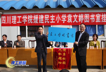 挂牌仪式于10月13日上午10点举行,校党委副书记唐健禾、宣传部部长支果、图书馆馆长郭毅、团委副书记王建琼和人文学院袁文婷原班主任老师邓丽群等出席了仪式并为图书室挂牌。