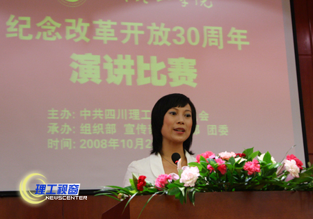 比赛中,各参赛选手紧紧围绕“纪念改革开放三十年”这一主题,以学校的发展变化为主线,从不同的角度抒发了对改革开放伟大精神的理解。选手们准备充分,情绪饱满,精彩的演讲博得现场听众的阵阵掌声。