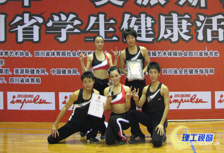 我校代表队克服困难,顽强拼搏,最终在“大众健美操五级套路”和“健身健美操自编套路”比赛中获得二等奖,并获得大会“最佳明星队”的称号。