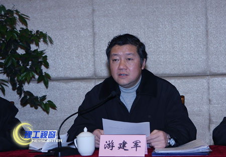 游建军书记就此次会议的目的、任务和要求进行了说明,他指出,大家一定要把会议精神融入下一步工作之中,进一步认清形势,明确任务,进一步坚定信念,真抓实干,把创建四川理工大学作为我校中长期工作的重点任务来抓。曾黄麟院长指出,要认清我校面临的挑战和机遇、优势与困难,以团结为生命,以创新为灵魂,解放思想,科学发展,变我校的区位弱势为区域优势,发挥部分学科的特色优势和水平优势,“三步”并作“两步”走,加快创建四川理工大学。