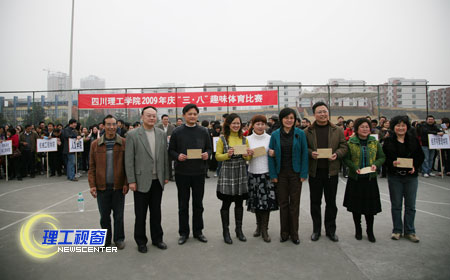 3月10日下午,由校工会主办的庆“三·八”趣味体育比赛在汇东校区篮球场隆重举行,全校20个分工会积极组织队伍参加了比赛。比赛采取男女混合编队形式,有五人齐步走、跳绳两个项目。经过激烈的角逐,黄岭校区管委会、外语学院、艺术学院、后勤服务总公司、机关二分会获得一等奖,化学与制药工程学院等9个分工会获得二等奖,计算机学院等6个分工会获得三等奖。校领导唐健禾、龚敏为获奖分工会颁奖,并表示了祝贺。