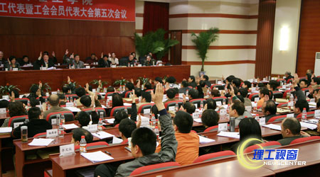 大会还听取了纪委副书记、监审处处长贾金玲关于《监察审计工作规定及程序执行情况报告》;计财处处长张捷关于《学校财务工作报告》;大会经过书面表决通过了人事处处长鲁飞关于《暂停实施离岗待退(内养)的报告》;审议了《基建工程招投标规定及程序执行情况报告》、《大宗物资采购规定及程序执行情况报告》和《专业技术岗位申报条件》(征求意见稿),代表将通过提案形式提交。大会还增选了郭金全同志为我校第一届工会委员会委员。