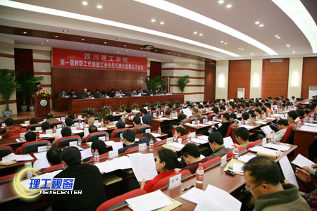 大会听取了院长曾黄麟以“坚持科学发展观,继续解放思想,奋力推进四川理工大学的建设”为主题的《院长工作报告》。在报告中曾院长回顾了2008年学校在党委的带领下,认真贯彻党的十七大精神,不断加强和改进党的建设,完成了新一轮处、科级干部竞聘上岗,实现了重要岗位干部的轮岗交流,加快了年轻干部培养的步伐;认真总结评建经验,扎实整改存在的问题,进一步完善了教学质量保障和监控的长效机制;以学科专业建设为龙头,完成了“二级学院”的组建;以师资队伍建设为核心,大力推进“科研兴校”、“人才强校”战略,努力提升科研水平和办学层次,学校的工作取得的显著成绩。他谈到,2009年面临创建“四川理工大学”的机遇与挑战,我们要理清学校下一步的发展思路,特别是如何坚持科学发展观,继续解放思想。要在全校范围内加大讨论和宣传力度,统一思想,提高认识,形成“人人关心创建、人人思考创建、人人支持创建”的良好氛围。“要紧紧依靠广大教职员工,群策群力,充分调动各方面的积极性,全校师生员工要把创建工作变为自觉行动,统一步调、形成合力。”全校师生员工要把心思和干劲用在创建上,和衷共济,拼搏奋斗,夺取“奋力推进四川理工大学建设”的创建工作的最后胜利。