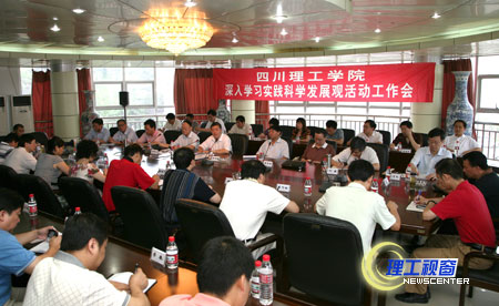 根据省委、省教育工委的部署和我校关于深入开展学习实践科学发展观活动实施方案的要求,6月26日上午,我校在行政中心4楼会议室举行了学习实践活动第二阶段总结暨第三阶段动员大会,这标志着我校学习实践活动进入最后一个阶段。学校深入学习实践科学发展观领导小组全体成员、学校检查指导组成员、工作组正副组长,各总支书记、直属支部书记参加了会议。会议由党委书记、校学习实践活动领导小组组长游建军主持。