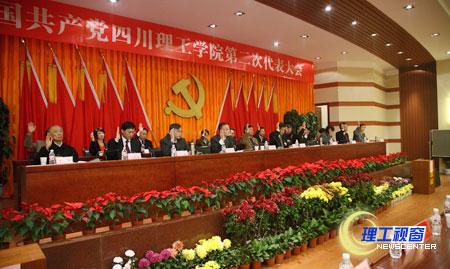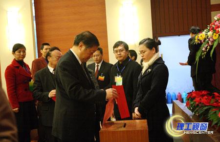 上午11:10,第二次全体会议在学术报告厅复会,会议由党委副书记、纪委书记李开世主持。总监票人向大会报告了计票结果,宣布了“两委”委员当选名单,新一届党委委员是:王成端 支果 叶文明 刘康 李开世 李可彬 肖兴政 吴斌 姚毅 夏宏钟 钱晓 唐健禾 龚敏 鲁飞 曾涛 曾黄麟 游建军 蔡乐才 颜杰。