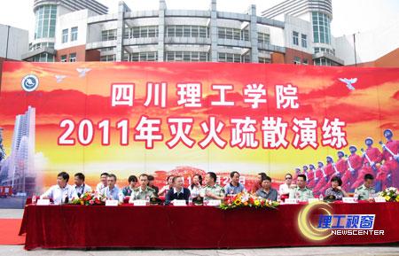自贡市消防支队副支队长叶子才、防火处处长肖春秋,学校副院长龚敏、刘康,学校相关职能部门领导以及各二级学院(部)领导、2000余名师生到现场进行了现场观摩。
