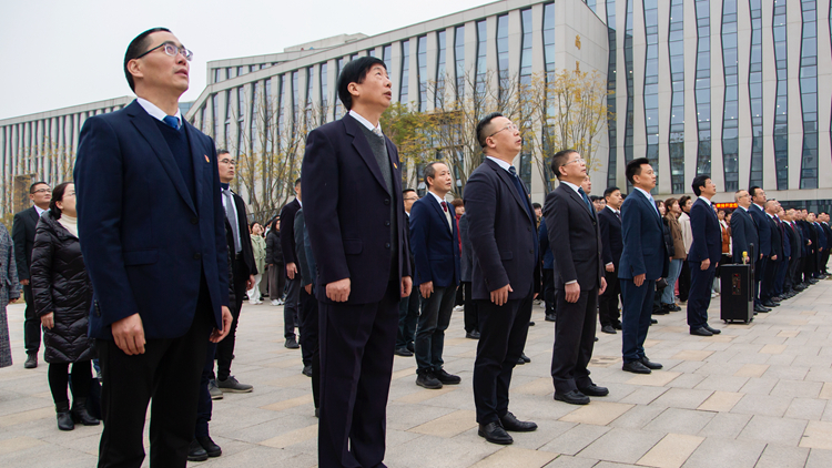 学校领导、职能部门和学院处科级干部、教师与学生代表精神焕发、气势如虹,身姿挺拔地整齐列队在旗帜广场!伴随着庄严的《义勇军进行曲》,五星红旗冉冉升起,迎风飘扬。在场的每一个人向国旗行注目礼,深怀对祖国无限的热爱和崇高的敬意。