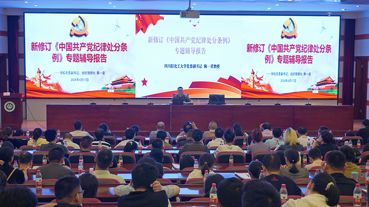 在全党开展党纪学习教育,是加强党的纪律建设、推动全面从严治党向纵深发展的重要举措。4月17日下午2:30,校党委副书记陈一君在汇东校区学术报告厅为化学工程学院200余名师生党员作了《中国共产党纪律处分条例》(以下简称《条例》)专题辅导报告,进一步增强党员师生的纪律意识和党性修养。