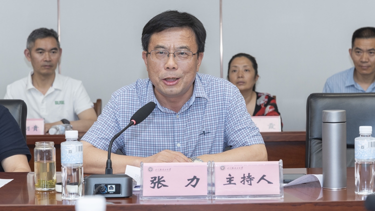 会议“第一议题”由张力领学习近平总书记对学校思政课建设作出的重要指示精神,并作交流发言。