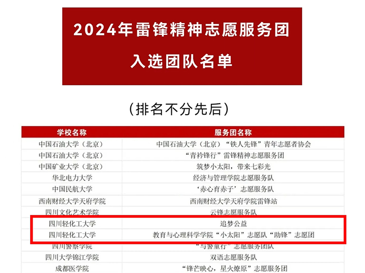 近日,我校的八支志愿宣讲队伍在全国八百所高校中脱颖而出,再度成功入选2024年全国大学生志愿宣讲团,充分展现了我校青年学生综合全面的积极风貌。其中,教育与心理科学学院“小太阳”志愿队“助锋”志愿团、马克思主义学院“追梦公益”团队入选全国雷锋精神志愿服务团;音乐学院“音你而来”团队、教育与心理科学学院“青春薪火·西柏传声宣讲团”入选西柏坡精神宣讲团;美术学院“梦之翼”志愿服务队、教育与心理科学学院“心语童伴”实践团队入选关爱行动“七彩假期”志愿服务团;土木工程学院“筑梦者”志愿服务队入选全国“乡村振兴”志愿服务团;自动化与信息工程学院“青岚微光·墨彩华章”团队入选“中国历代绘画大系”全国大学生志愿宣讲团。