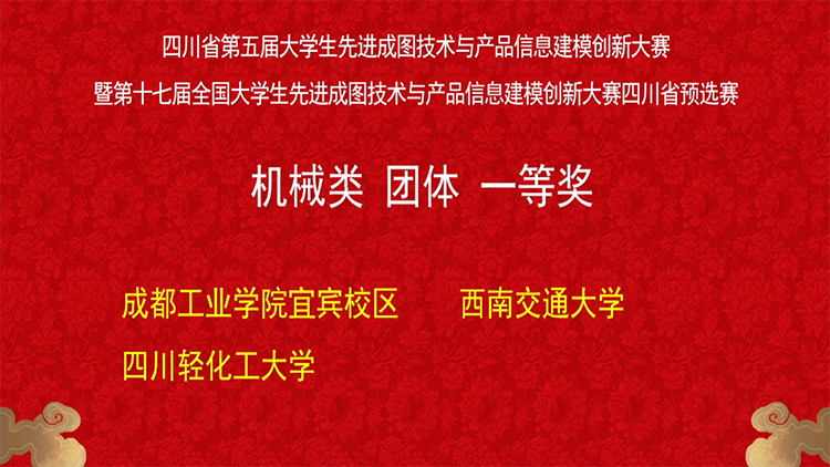 6月16日,由四川省教育厅、全国大学生先进成图技术与产品信息建模创新大赛组委会、制图技术专业委员会等主办的四川省第五届大学生先进成图技术与产品信息建模创新大赛落下帷幕。来自四川大学、西南交通大学、电子科技大学、成都理工大学等36所高校的1132人组成77支参赛队伍角逐四个类别的团体赛及个人全能赛奖项。我校机械工程学院组成的参赛队伍,在师生共同努力下,历经近十个月认真备赛,经过先进成图技术赛道、轻量化设计赛道、增材制造赛道、数字化创新设计赛道的激烈角逐,共计获得一等奖6项,二等奖5项,三等奖8项的佳绩,也是我校参赛以来首次以团体第三名的成绩入围国赛。