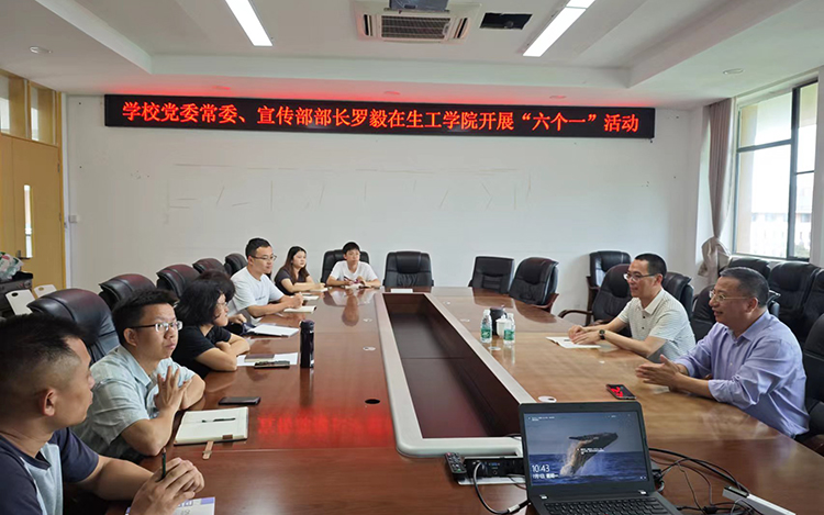 为全面贯彻落实全国教育大会精神,加强领导干部带头深入基层联系学生,推动“三全育人”工作向纵深发展,加强学生思想政治教育的情感共鸣,精准对接师生需求,增强教育效果。7月1日,学校党委常委、宣传部部长、统战部部长罗毅深入生物工程学院,开展领导干部联系基层“六个一”活动,与生物工程学院学生第三党支部党员、学生党员代表、学院高端人才代表黄丹教授、实验室科研团队负责人龚利娟开展面对面座谈交流。座谈会由生物工程学院党委书记张利主持。