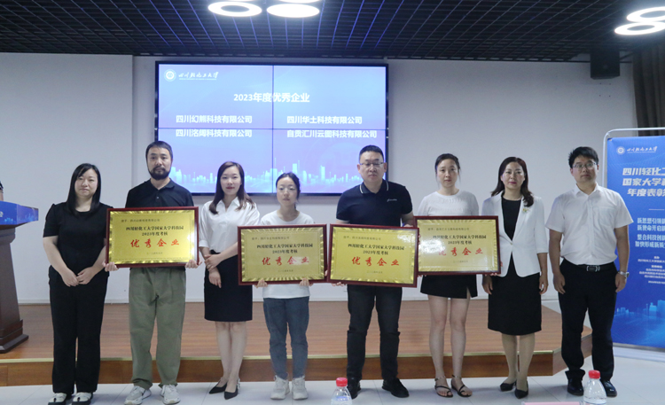 会上,大学科技园管理办公室副主任董亮、吴浩分别宣读了2024年阶梯培育计划企业名单、为2023年度大学生优秀创业家颁奖。大学科技园管理办公室主任张潇文及有关单位领导为四川华土科技有限公司等7家科技创业实习基地共建企业授牌;为园区2023年度获评优秀、良好的四川幻熊科技有限公司等14家企业颁发获奖证书及奖牌;为自贡市海韵制冷科技有限公司等4家毕业企业颁发证书。最后,大学科技园邀请四川银行自贡分行信贷部部长李江就企业所需金融服务等产品作了介绍。