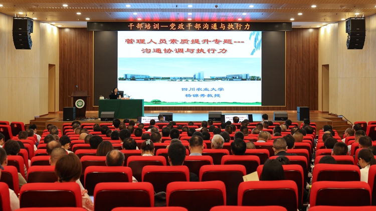 7月9日上午,李白河校区学术报告厅内座无虚席。四川农业大学教授、博士生导师杨锦秀结合自己在高校多年、多岗位管理工作的经验及感悟,通过各种生动案例为全校领导及副处级以上干部作了“党政干部沟通与执行力”的培训。校党委副书记陈一君主持培训。
