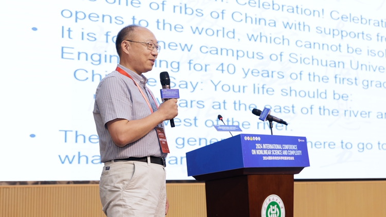 国际非线性科学及复杂性学会会议主席迪米特里•沃尔琴科夫教授通过在线方式发表了致辞,对会议的召开表示祝贺,并对未来非线性科学及复杂性领域的发展寄予厚望。紧接着,非线性科学及复杂性学会会议指导委员会主席罗朝俊教授详细介绍了会议的历史与发展脉络,并阐述了选择宜宾作为会议举办地的考量因素,彰显了宜宾在推动该领域国际合作与交流中的重要地位。