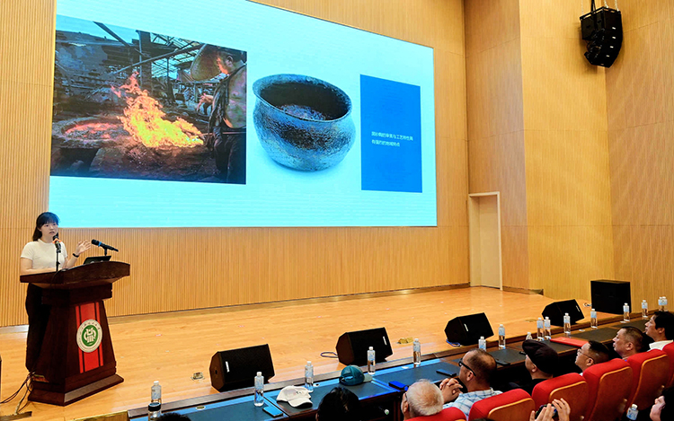 研讨会上,结合活动主题“陶醉荣州 茶香天下”,我校美术学院朱君如副教授作了“来自四川的陶——在地的创作与研究”课题学术分享。她从实践角度出发,介绍了自己在陶瓷艺术创作、本科和研究生教学以及科研工作等方面的思考,为与会者介绍了荣县深厚的陶产业文化,以及她对“荣州陶”发展前景的思考。“荣州陶”首席艺术家刘勇以“荣州陶的华丽转身”为题,就自己如何以“艺术生活化、生活艺术化”为创作理念,带动荣县土陶从工业陶到艺术陶的“华丽转身”的历程向与会者作了分享。荣县陶瓷协会会长刘世阳作了荣县陶产业发展报告。
