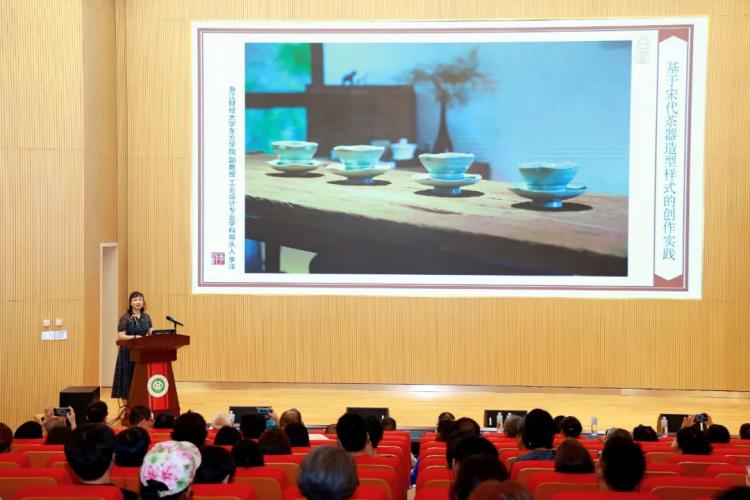 来自中国、韩国和日本的13位学者和艺术家分享了创作理念、研究动态和成果。中国美术馆副研究员杨靖结合中国美术馆的现当代陶瓷的收藏,分享了他对当代陶瓷艺术审美和艺术价值的研究;清华大学张钰稳就《从“茶”字演变看动态发展的传统茶事——以中国唐代时期以前为例》,系统地梳理了茶文化与陶瓷艺术的关联发展;浙江财经大学东方学院文化传播与设计学院李洋副教授分享了关于宋代古籍中的茶器设计理念与制作思想的研究;北京城市学院工艺美术系李冰副教授作了以“宋代建窑建盏文化研究”为题的学术报告;韩国庆星大学朴世珍、裴彩恩以十八世纪后期到十九世纪为研究的时间主线,分享了朝鲜时代各种瓷器的艺术风格和时代背景,金思昭做了“布迪厄场域理论在陶瓷饮食器设计中的表现和应用”的学术报告。