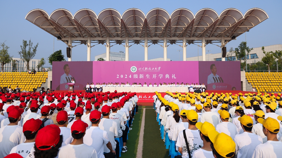 刚过去的暑假,除了等待录取通知书,不少同学还做了最强攻略,想把关于我们大学的情况“一网打尽”。我也不时在网上捞到一些有意思的信息:有同学开启咆哮模式问,“偏要去川轻化什么意思,川轻化到底有谁在啊?!”不少新生闹热地跑来留言,“颤抖吧,出息了,成功上岸川轻化!”也有看热闹不嫌事大的来吃瓜我们的“小徐同学”,“祝贺学长,又可以在川轻化考六次英语六级了。”还有硬夸咱学校的说,“上大分,四川空调电梯大学,孩子老喜欢了。”更有不少耿直孩子许愿,“军训请上点强度,强烈要求一个月!”磕到了,同学们,都是会整活的善良孩子,相信你们对川轻化的选择都将始于颜值、忠于内涵、久于情怀。而你们不知道的是,为了这场甜蜜奔现,川轻化已足足准备了59年——时光如风,跨越山海。回溯至1965年,我校前身华东化工学院(现华东理工大学)的一批师生响应党和国家的号召,从黄浦江畔西迁至沱江之滨,安家自贡黄岭,披荆斩棘、从无到有,铸就“652”工程之根基,涵养我校“胸怀天下之家国情怀,舍我其谁之使命担当,自强不息之开拓奋进”的“652精神”。作为我校“652精神”新的传承者,请所有2024级新生起立、立正,和校长一起来领悟“652精神”内涵。请跟着我大声说:“胸怀天下之家国情怀”(新生念)——“舍我其谁之使命担当”(新生念)——“自强不息之开拓奋进”(新生念)。很好很强大,有被硬控20秒,请坐下。谢谢同学们“秋天里的第一次呐喊”,其中真意,还待你们以后用心与行去细品。乘风跨越,创新前行。弘扬“厚德达理、励志勤工”校训,一代代川轻化人薪火相传、接续奋斗,几度更名、蝶变逆袭,让大家能够在现代科技、艺术时尚的李白河校区和庄严典雅、美轮美奂的“万里长江第一校”宜宾校区之间尽情地citywalk,在校园里就能露营、爬山、看最美的风景,你们就说这city不city啊?还让你们住进有电梯空调、上床下桌、两卫一浴的“梦中情舍”,一住一个不吱声!同风而起,扶摇直上。始终坚持立德树人,努力办好人民满意的教育,无数川轻化建设者和守护者,用青春和汗水、奋斗与牺牲,让这所承载三线建设“西迁精神”的大学扶摇而上,获批成为国家国防科技工业局和四川省人民政府共建高校,拥有总占地面积5500余亩、总建筑面积175万余平米的辽阔天地。你们这一批校园萌新,不用再羡慕别人,已成功解锁能够给你温暖、伴你成长、助你进步的人生良配,今后和川轻化一起用心致敬过去、把握现在、憧憬未来,让爱意和理想在大学里的每一天都充分具象化。