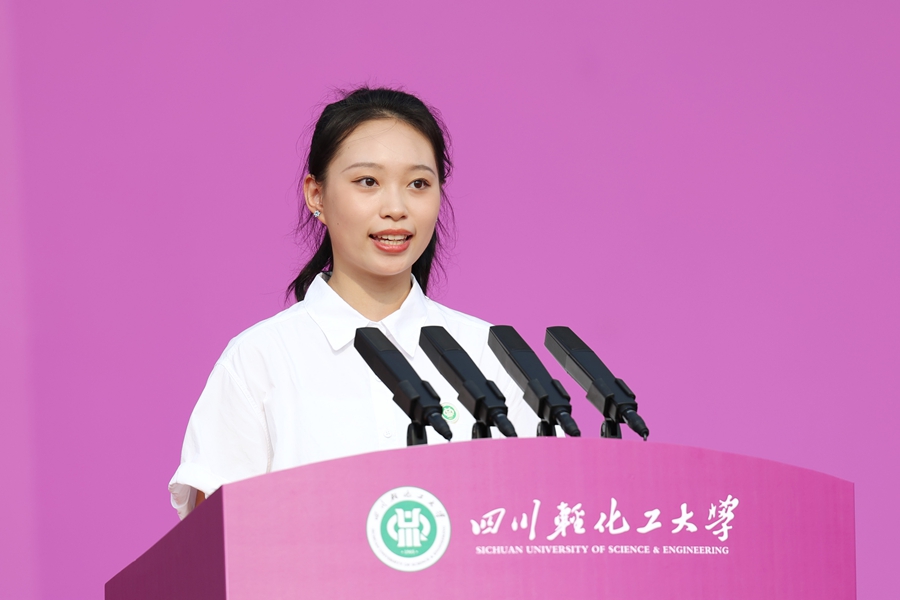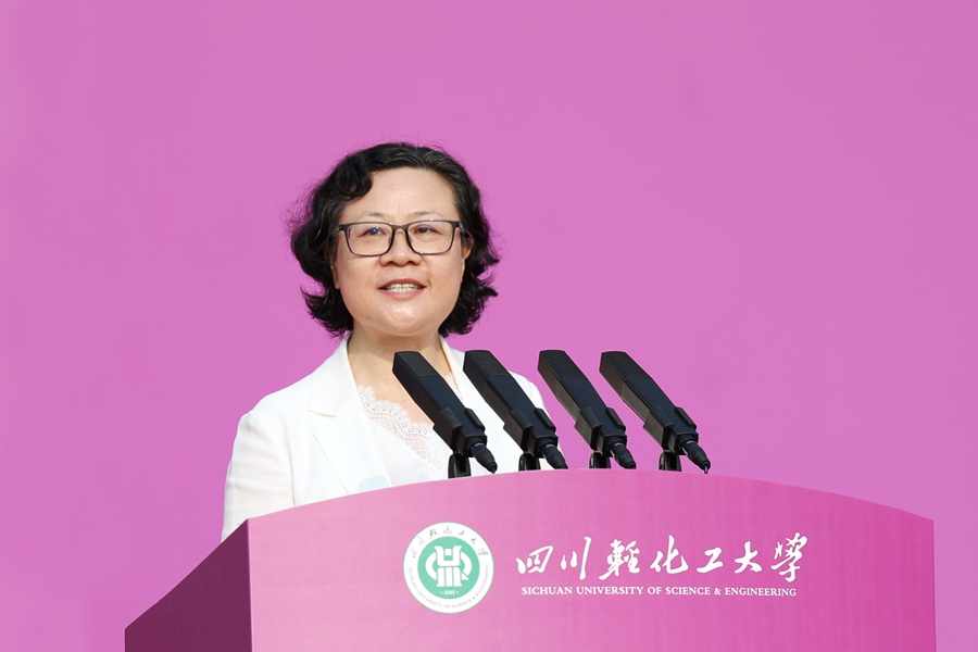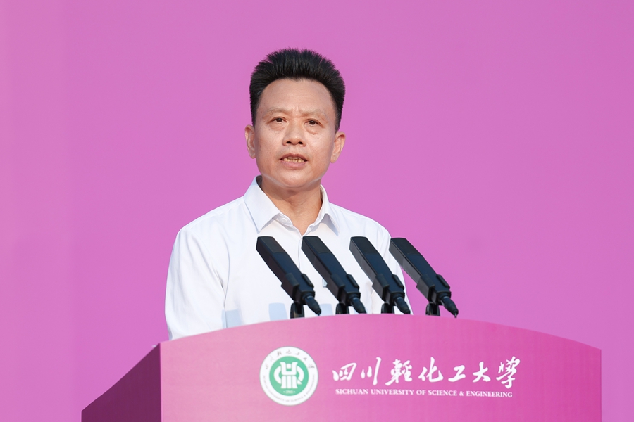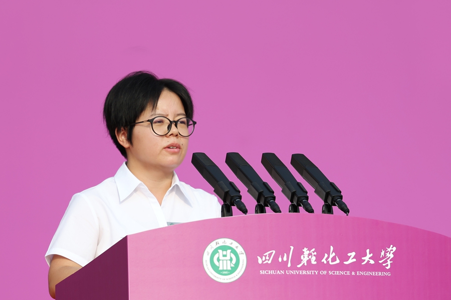 自贡市人民政府副市长周耘在致辞中代表市委、市政府,对奋勇拼搏、圆梦高考的优秀学子表示欢迎,“你们的到来,不仅是川轻化的新生力,也为自贡这座老工业城市注入了蓬勃动力和青春热力。”她介绍自贡的基本情况和特色名片,讲述自贡人素有爱国主义传统和勇于创新创造的精神品质,并表示大家来到大学和自贡,不仅要获取知识,更要培养应对变革、引领未来的能力,成长为社会发展之栋梁。
