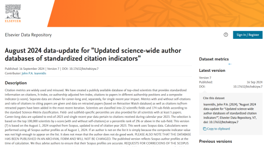 完整榜单请见:https://elsevier.digitalcommonsdata.com/datasets/btchxktzyw/7