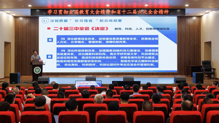 会议指出,要提高政治站位,充分认识重大意义,切实把思想和行动统一到全国教育大会精神和省委十二届六次全会精神上来;要认真落实部署要求,在新的起点上推进学校内涵式高质量发展;要强化组织领导,确保各项工作决策部署落地见效。