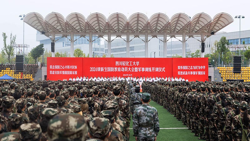 自贡军分区战备建设处上校处长王凯、自流井区人民武装部上校部长李方孔、全体校领导、学校相关部门负责人、各学院党委书记、武警自贡支队官兵、军训指导员、军训教官、2024级本科生参加仪式。仪式由学校党委副书记陈一君主持。