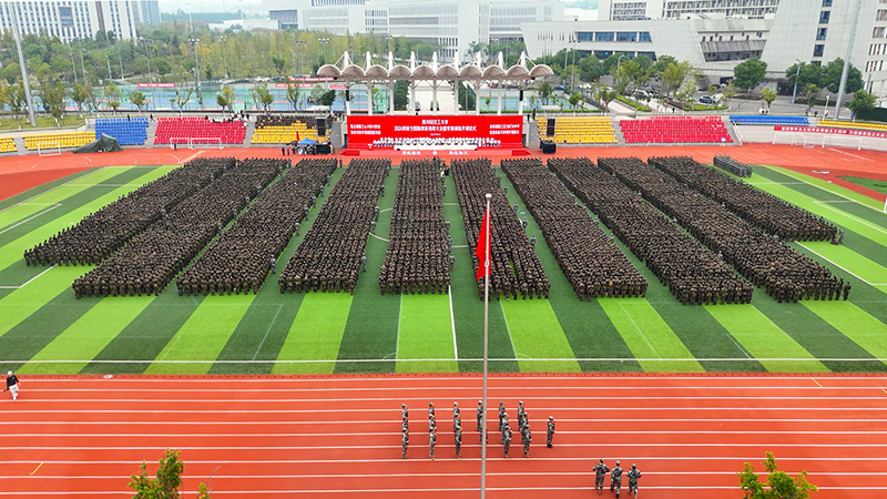 10月8日上午,我校2024级新生国防教育动员大会暨军事训练开训仪式在李白河校区A区体育场举行。2024级全体新生身着统一的军训服,精神抖擞地在操场上排列成一个个方队。全体教官踏着整齐划一的步伐跑步至主席台前,整队敬礼后退场,向同学们展示了他们的训练有素。