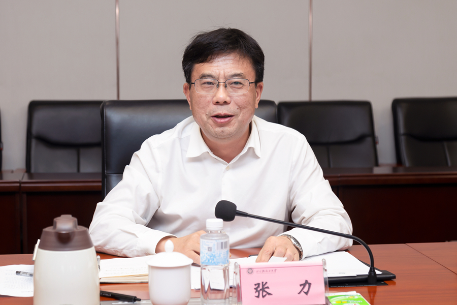 张力讲述了学校的建校历史、发展定位、办学特色等基本情况,了解到农行的发展历程,表示双方都因国家战略布局而生、因政策支持而兴,并对农行长期以来为学校及师生提供的优质金融服务表示感谢。他介绍了学校近年在科技创新、服务社会等方面的成果,以及当前奋力推进的“申博”、建校60周年校庆筹备等工作,希望未来农行四川省分行能够继续加大支持力度,发挥双方优势,聚合各方资源,探索在人工智能、金融调研、共建实验室等方面实现合作,共同打造银校合作典范,助力学校和地方经济社会高质量发展。