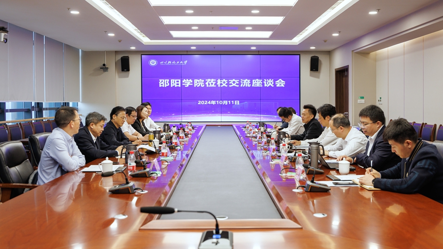张平向与会人员介绍了邵阳学院的历史沿革、办学特色、学科建设及近年的发展成绩。他对我校近年来的发展表示高度认可,指出四川轻化工大学在特色发展道路上的积极探索与实践令人钦佩。他表示,此次交流座谈为两校之间搭建了一座沟通的桥梁,他将把我校先进经验和成功做法带回去,加以借鉴和应用。同时,他希望今后两校之间保持紧密的联系,在交流合作中共同进步。
