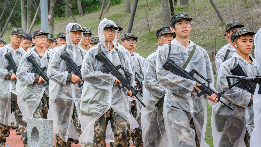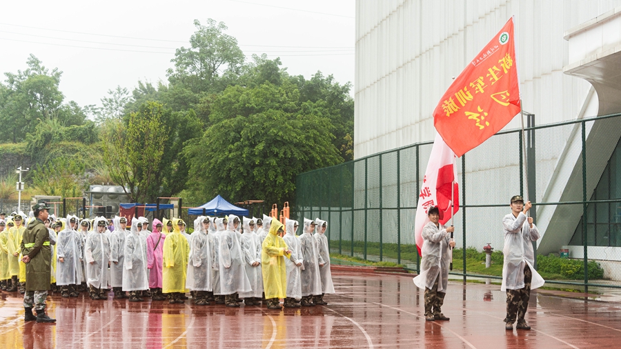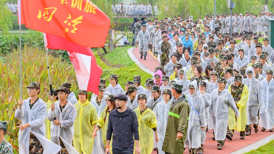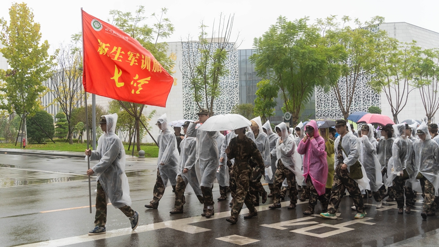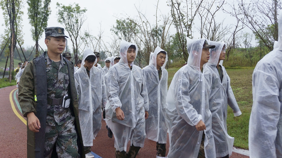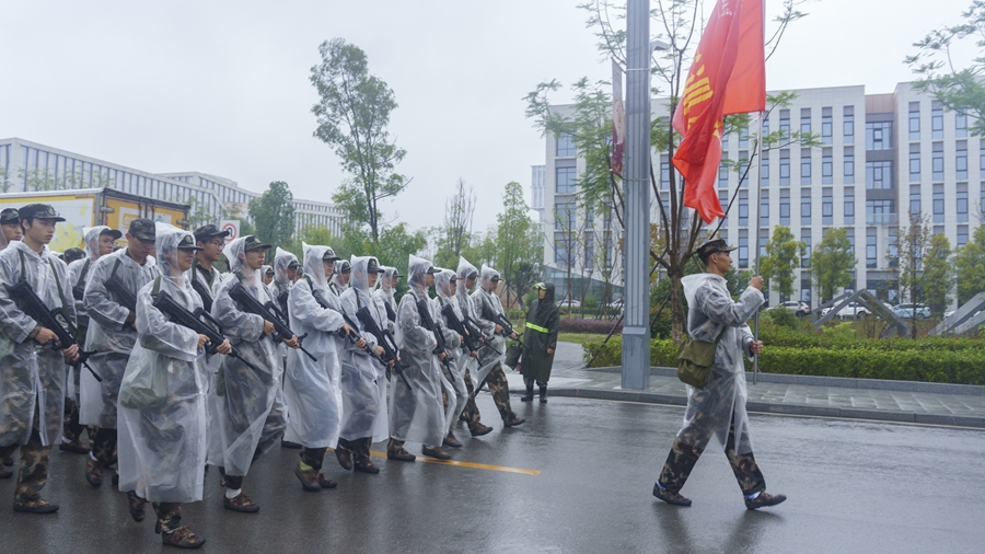 秋雨绵绵,细雨如丝,整个军训旅在学校南门整装待发。出发前,军训旅政委邹国正做了拉练动员,武装部部长封雪松一声令下,先遣部队开路启航。2024级军训旅8个营96个连7400余名学生,紧随其后,戎装启程。军训领导小组成员、全体军训教官、教导员随队前行,共同完成绕宜昆河滨河公园两圈总计10公里的徒步行军,为同学们保驾护航。