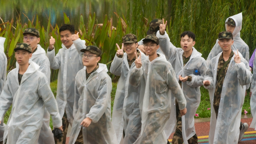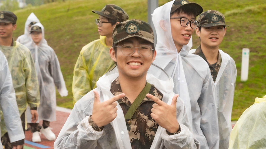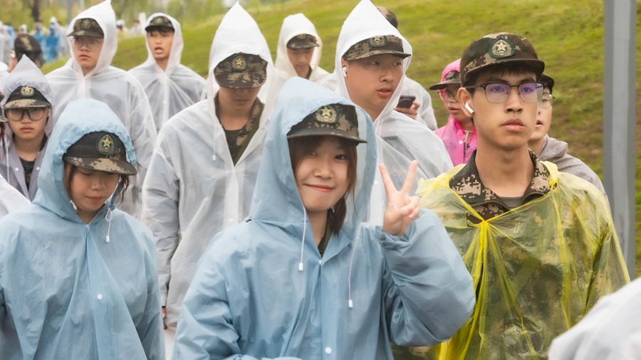 雨水浇不灭青春的火焰,泥泞阻挡不住坚定的步伐。体育教育20244班甘涔序表示“迷彩戎装,英姿飒爽,以如此拉风的方式体验了儿时的参军梦,雨水都成了我的背景板。”工程管理20241班的邓惠芝说“这不仅是一场简单的行走,更是一次对意志力的考验,分不清雨水和汗水,冷空气把整个人都贯穿,我想我会一直记得这次别样的感受。”一声声响亮的口号和嘹亮的歌声气贯长虹,手中高举的旗帜随风飞扬,与青春迷彩一同筑起了最美的风景。大家彼此鼓励,携手并进,每一步的迈进,都是对自我的挑战与超越,每一声口号,都是青春誓言的嘹亮回响。