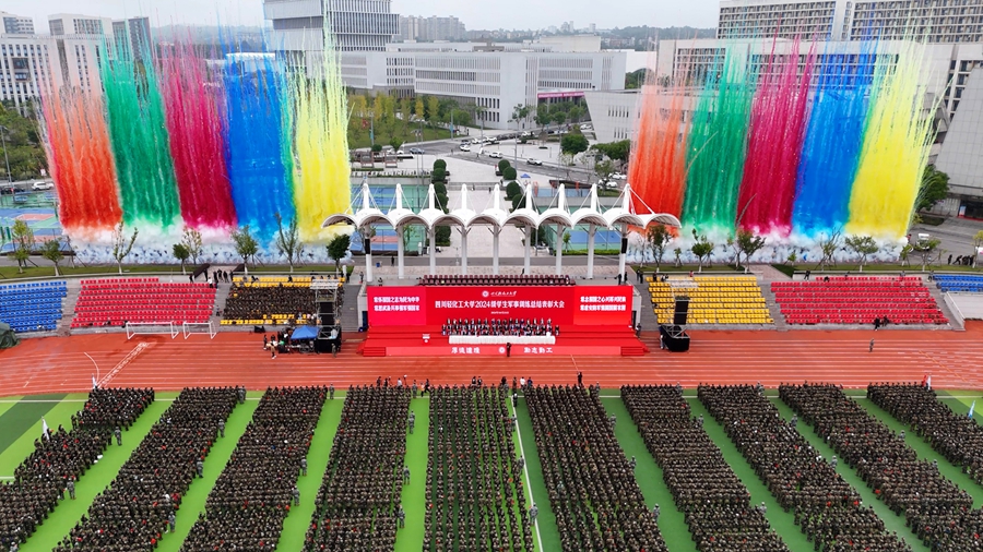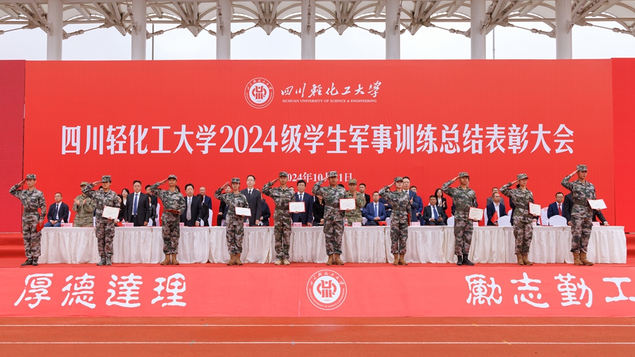 自贡市教育和体育局副局长余勇,自流井区委常委、区人民武装部政治委员赵金龙,省纪委监委驻学校纪检监察组组长、党委副书记、纪委书记先一,副校长高小林、罗惠波、胡光忠,党委常委、宣传部部长、统战部部长罗毅及相关职能部门负责人,各学院党委书记、副书记,2024级新生辅导员、武警自贡支队官兵、全体军训教官、全体2024级本科生参加本次总结表彰大会。学校党委副书记陈一君主持大会。