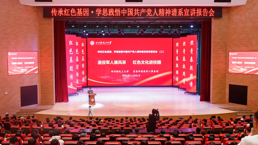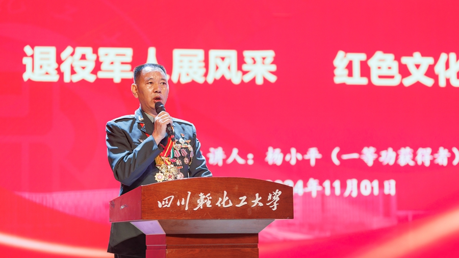 11月1日下午,我校在宜宾校区科学会堂举行“传承红色基因、学思践悟中国共产党人精神谱系”主题宣讲第二场报告会。大会特别邀请退役军人杨小平、向廷富和在校生林志强为大家分享他们的军旅生涯和心得体会,弘扬红色传统,传承军旅精神,激励广大师生不忘初心、牢记使命,争做有作为、敢担当的时代新人。