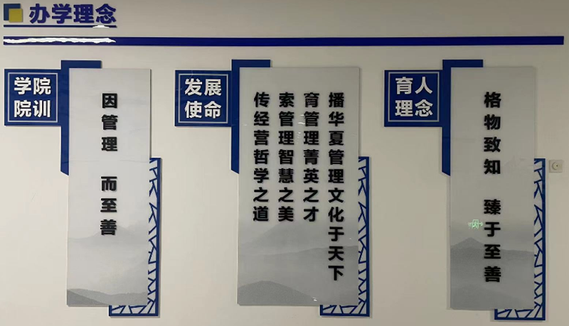 管理学院坚持以习近平新时代中国特色社会主义思想为指导,持续强化理论武装,加强党性淬炼,紧扣学校建设特色鲜明、优势突出的高水平综合性大学目标,以学促思、以思促行、以行促效,深入实施“研学结合,产教融合,特色发展”战略,不断提升竞争力。学院秉承“因管理、而至善”的院训和“格物致知、臻于至善”的育人理念,以“传经营哲学之道、索管理智慧之美、育管理菁英之才、播华夏管理文化于天下”为发展使命,努力将学院建设成全国知名、川南领先、四川省属高校一流管理学院和高素质应用型管理人才的重要培养基地。